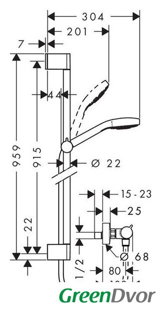 | Тип | душевой гарнитур (без верхнего душа) |