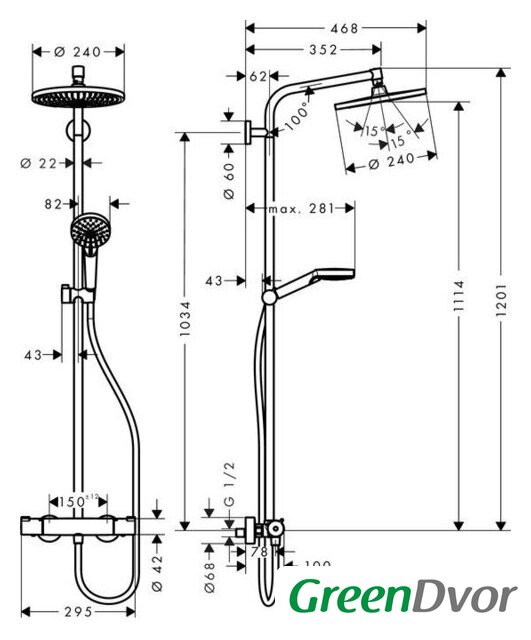 | Диаметр (ширина) верхнего душа | 240 мм |