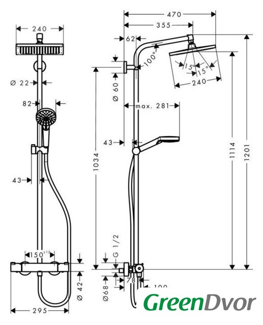 | Диаметр (ширина) ручного душа | 100 мм |