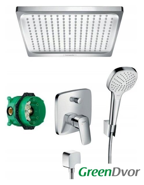 | Комплектация | верхний душ, ручной душ (лейка), держатель лейки, шланг, смеситель |