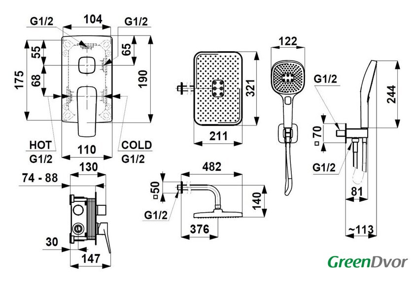 | Комплектация | ручной душ (лейка), шланг, смеситель |