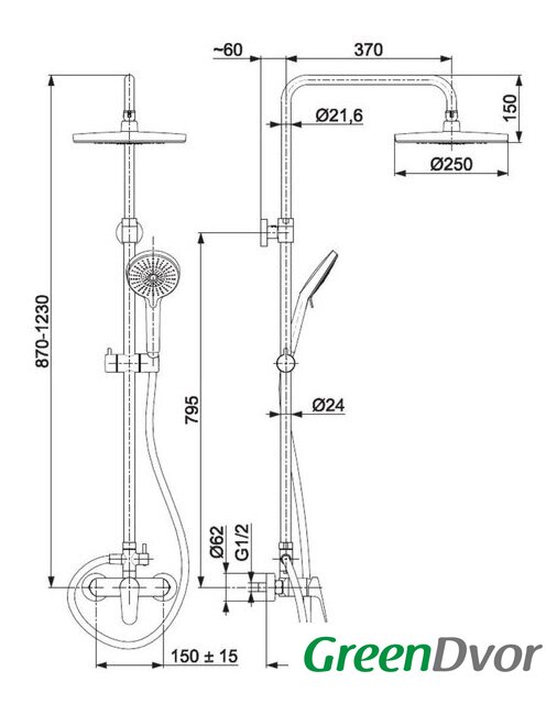 | Диаметр (ширина) верхнего душа | 250 мм |