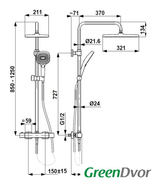 | Комплектация | верхний душ, штанга, ручной душ (лейка), держатель лейки, шланг, смеситель |