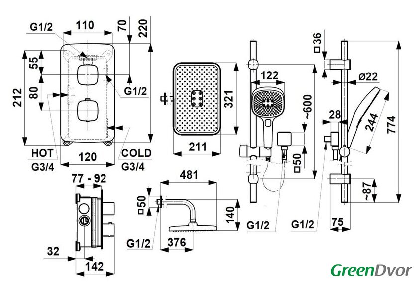 | Комплектация | штанга, ручной душ (лейка), держатель лейки, шланг, смеситель |
