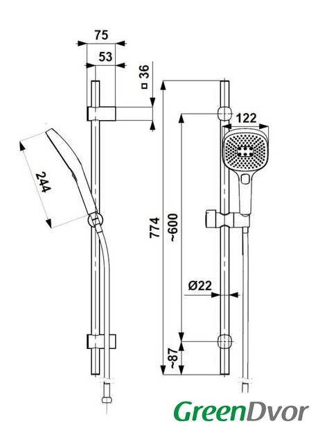 | Комплектация | штанга, ручной душ (лейка), держатель лейки, шланг |