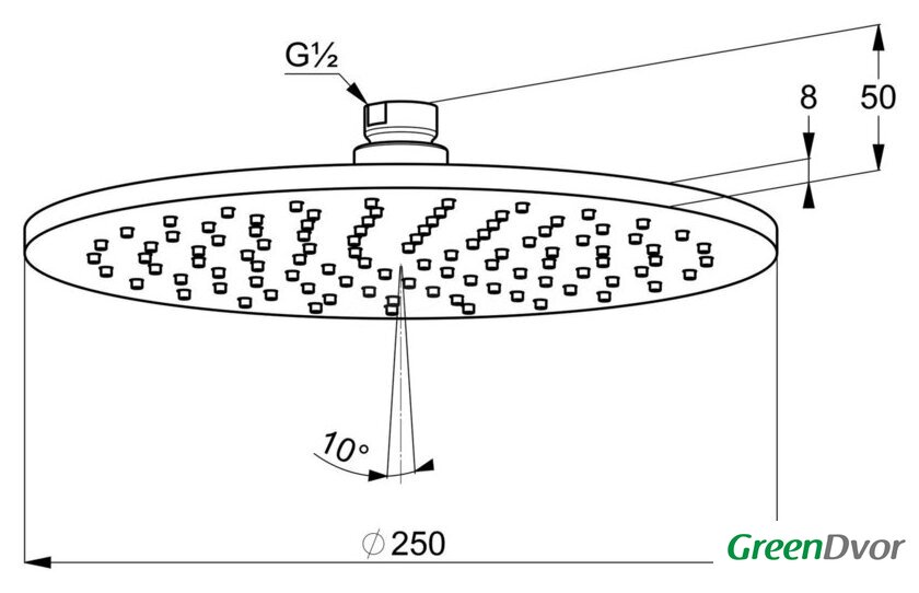 | Диаметр (ширина) верхнего душа | 250 мм |