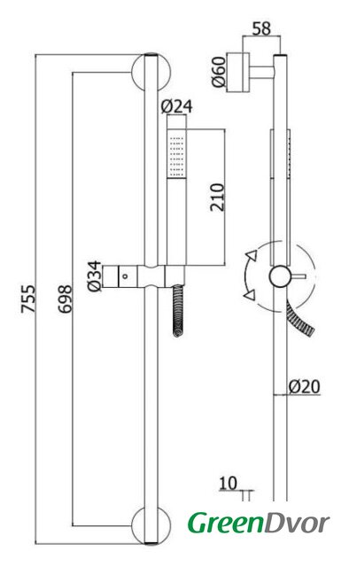 | Комплектация | штанга, ручной душ (лейка), держатель лейки, шланг |