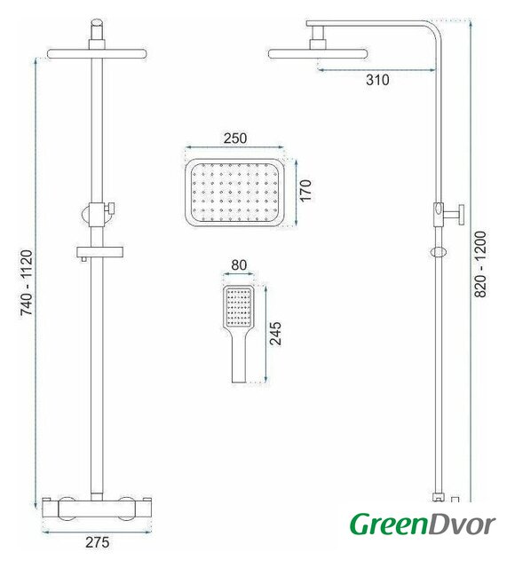| Диаметр (ширина) верхнего душа | 250 мм |