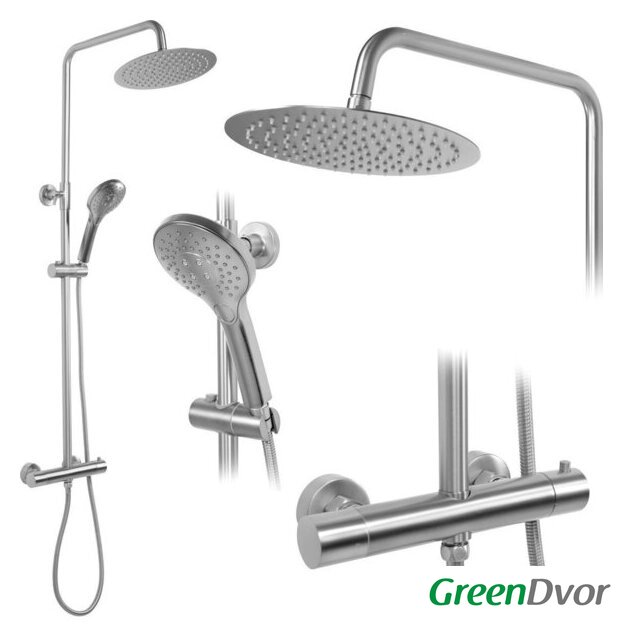 | Комплектация | верхний душ, штанга, ручной душ (лейка), держатель лейки, шланг, смеситель |