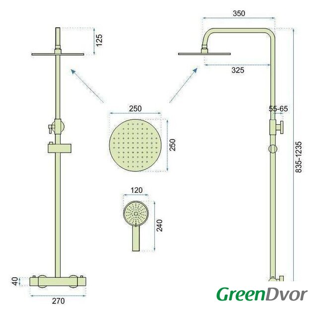 | Диаметр (ширина) верхнего душа | 250 мм |