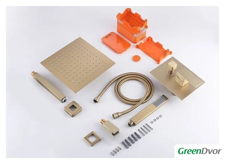 | Комплектация | верхний душ, ручной душ (лейка), держатель лейки, шланг, смеситель |