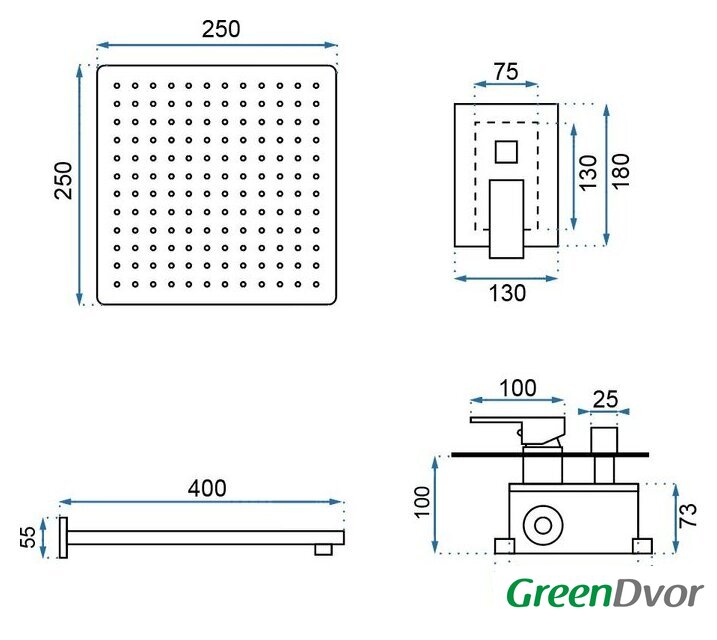 | Диаметр (ширина) верхнего душа | 250 мм |