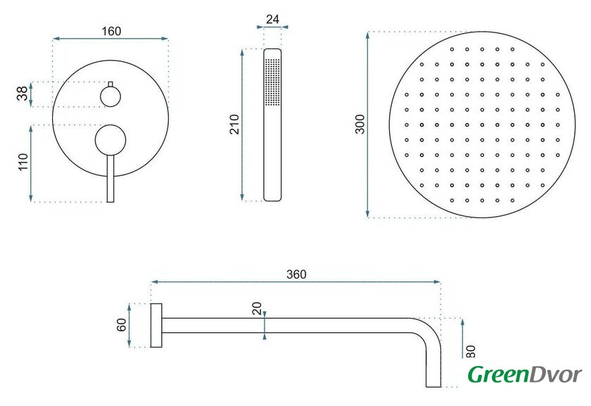 | Диаметр (ширина) верхнего душа | 30 мм |