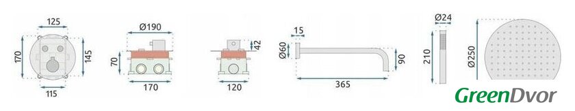 | Комплектация | верхний душ, ручной душ (лейка), держатель лейки, шланг, смеситель |