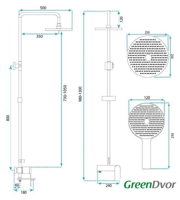 | Комплектация | ручной душ (лейка), держатель лейки, шланг, смеситель, излив для ванны |