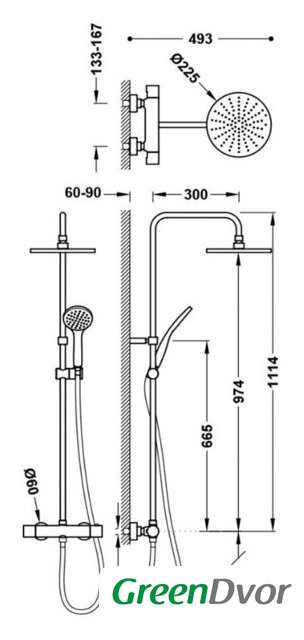| Диаметр (ширина) верхнего душа | 225 мм |
