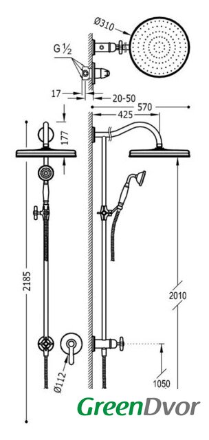 | Диаметр (ширина) верхнего душа | 310 мм |