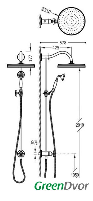 | Диаметр (ширина) верхнего душа | 310 мм |