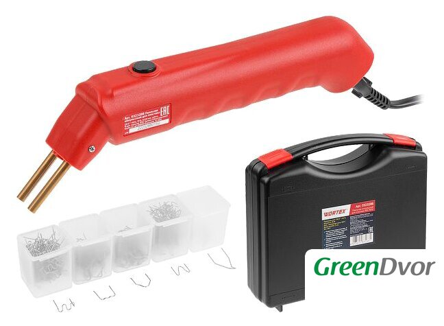 Комплектация | Импульсный паяльник для пластика - 1 шт.;Скоба плоская 0,8 мм - 50 шт.;Скоба плоская 0,6 мм - 50 шт.;Скоба волнообразная - 50 шт.;Скоба угловая - 50 шт.;Инструкция по эксплуатации - 1 шт.;Кейс - 1 шт. |