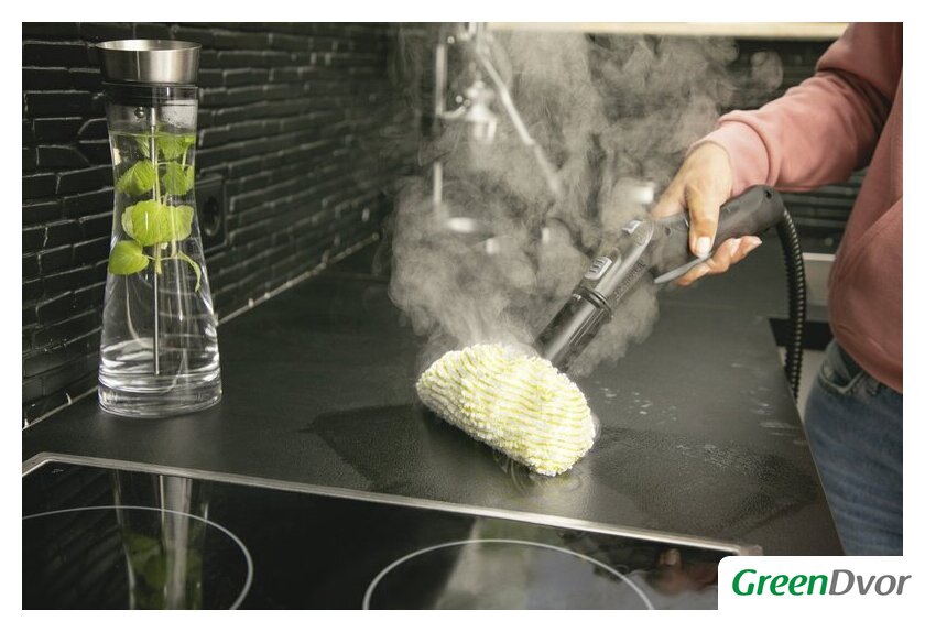 | Дополнительные насадки и приспособления | - Универсальная салфетка для пола EasyFix;- Микроволоконная обтяжка для ручной насадки;- Порошковый антинакипин: 3 шт;- Точечное сопло;- Ручная насадка;- Малая круглая щетка (черная);- Насадка для пола: EasyFix;- Удлинительные трубки (2 × 0,5 м). |