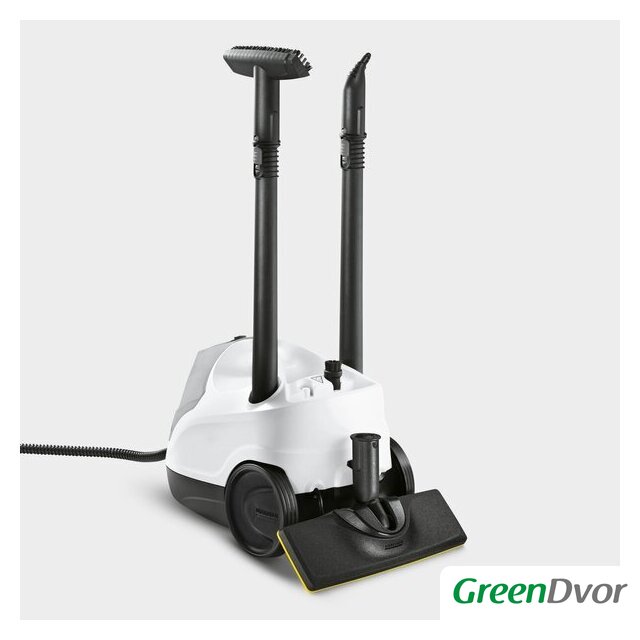 | Дополнительные насадки и приспособления | - Универсальная салфетка для пола EasyFix: 1 шт.- Обтяжка из микроволокна для ручной насадки: 1 шт.- Порошок антинакипина: 3 шт.- Точечное сопло- Ручная насадка- Круглая щетка, черная: 1 шт.- Паровой утюг EasyFinish- Насадка для пола: EasyFix- Удлинительные трубки (2 х 0,5 м) |