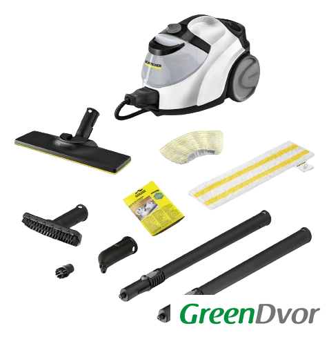 | Дополнительные насадки и приспособления | - Универсальная салфетка для пола EasyFix;- Микроволоконная обтяжка для ручной насадки;- Порошковый антинакипин: 3 шт;- Точечное сопло;- Ручная насадка;- Малая круглая щетка (черная);- Насадка для пола: EasyFix;- Удлинительные трубки (2 × 0,5 м). |
