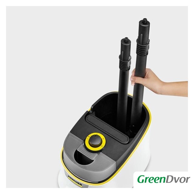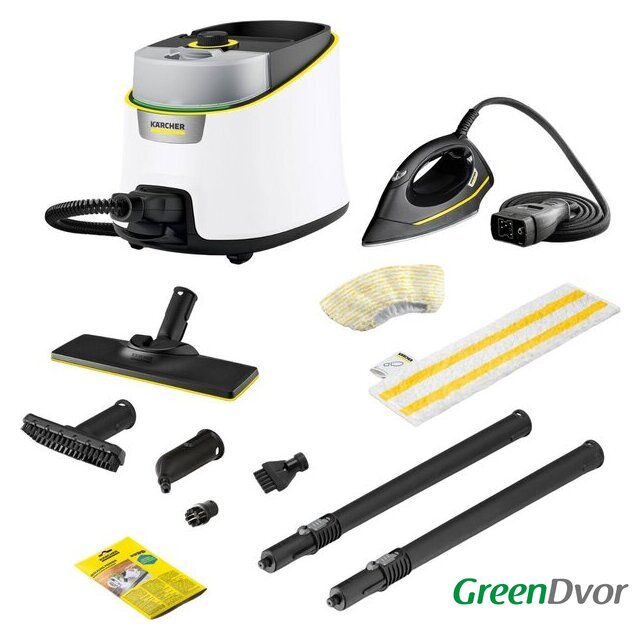 | Дополнительные насадки и приспособления | - Универсальная салфетка для пола EasyFix: 1 шт.- Обтяжка из микроволокна для ручной насадки: 1 шт.- Порошок антинакипина: 3 шт.- Точечное сопло- Ручная насадка- Круглая щетка, черная: 1 шт.- Щетка для очистки швов- Паровой утюг EasyFinish- Насадка для пола: EasyFix- Удлинительные трубки (2 х 0,5 м) |