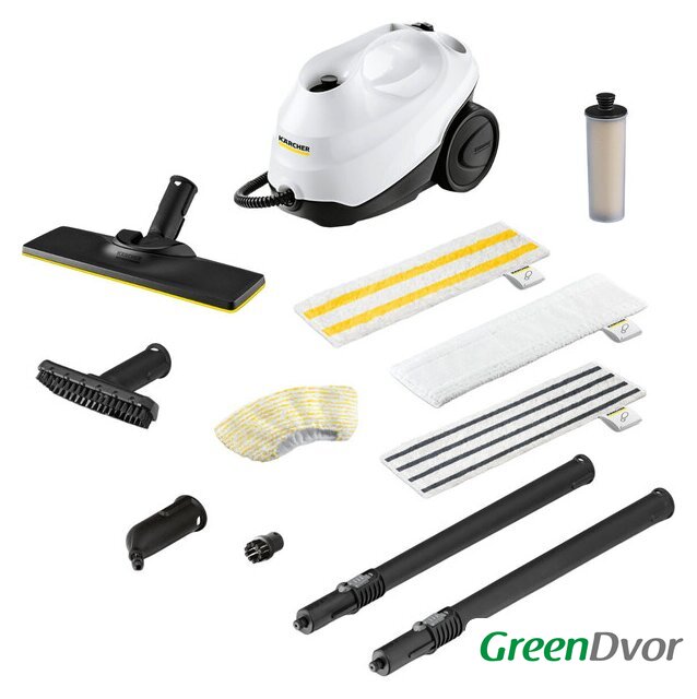 | Дополнительные насадки и приспособления | - Универсальная салфетка для пола EasyFix;- Деликатная салфетка для пола EasyFix;- Абразивная салфетка для пола EasyFix;- Микроволоконная обтяжка для ручной насадки;- Картридж для защиты от накипи;- Точечное сопло;- Ручная насадка;- Малая круглая щетка (черная);- Насадка для пола: EasyFix;- Удлинительные трубки (2 × 0,5 м). |