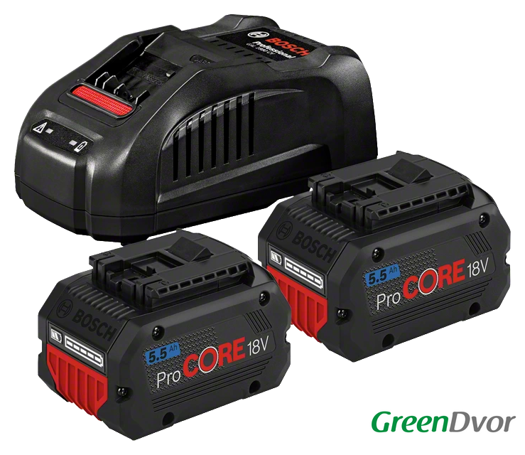 Комплектация | - 2 аккумулятора ProCORE18V 5.5Ah- Зарядное устройство GAL 1880 CV |
