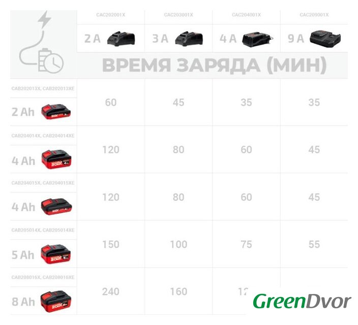 | Номинальное напряжение аккумулятора | 20 В |