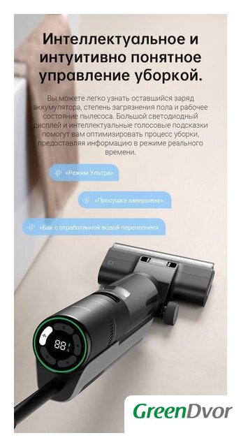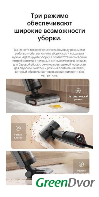 Функциональные особенности | всасывание жидкостей, дисплей, автоматическая мойка швабры |