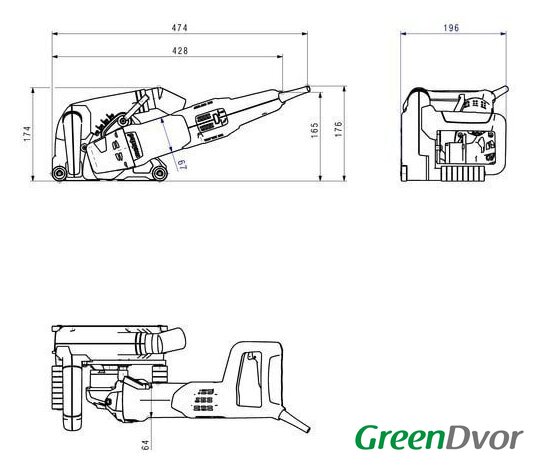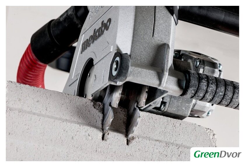 Комплект поставки | Распорные кольца2 алмазных отрезных кругаЗажимная гайкаРожковый ключЛопаткаПластиковый кофр |
