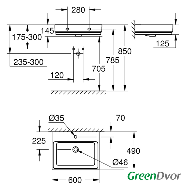 | Отверстие под смеситель | 1 (+2 намеченных отверстия) |