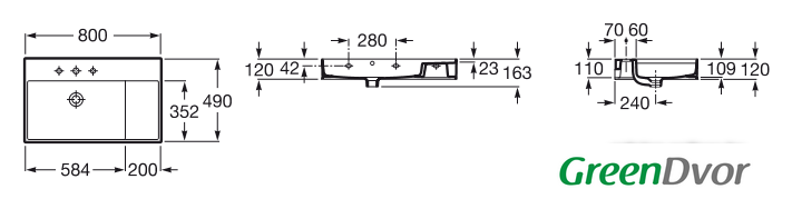 | Отверстие под смеситель | 1 шт. |