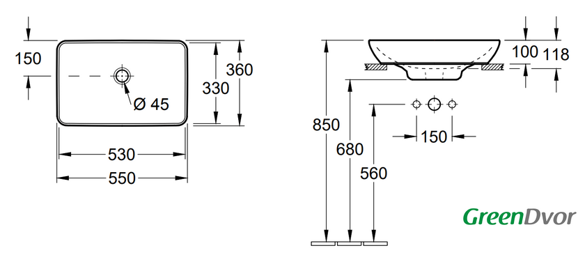 | Отверстие под смеситель | нет |