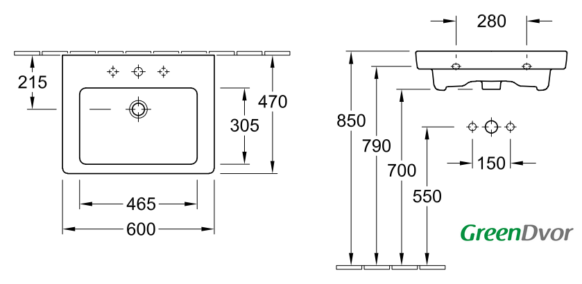 | Отверстие под смеситель | 1 шт. |