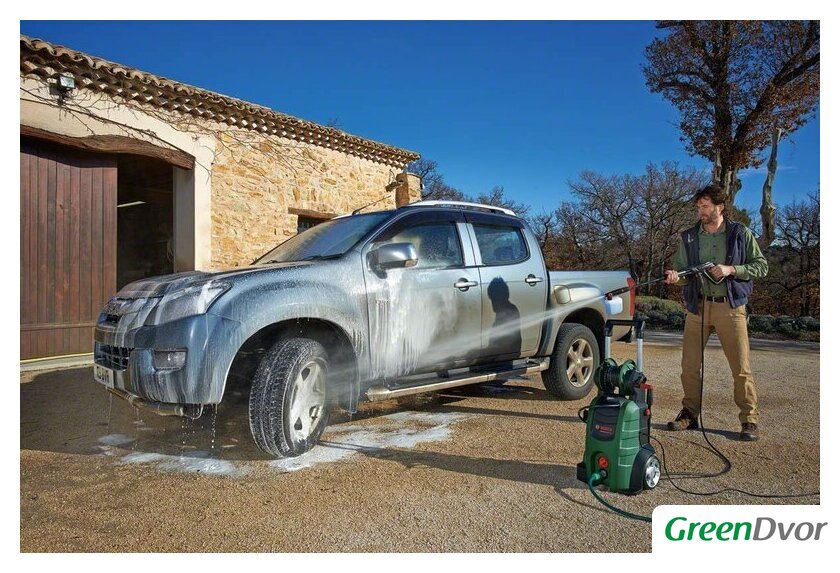 Комплектация | - Пистолет высокого давления с металлическим стволом;- Трубка;- Шланг высокого давления 8 м;- Регулируемая распылительная насадка;- Поворотная насадка;- Насадка для нанесения моющего средства под высоким давлением, 550 мл;- Водяной фильтр. |