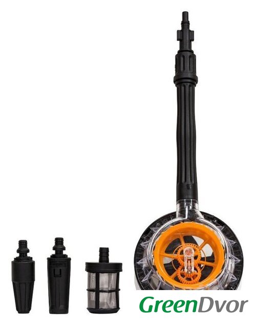 | Комплектация | • мойка• пистолет• удлинительная трубка• веерная насадка• грязевая фреза• вращающаяся моющая щетка• быстросъемное соединение с фильтром тонкой очистки• фильтр для работы в режиме всасывания• стержень для очистки• руководство по эксплуатации• гарантийный талон |