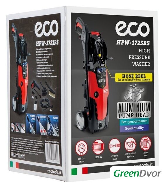 Комплектация | Очиститель высокого давления;Шланг высоконапорный - 8 м; Барабан для хранения шланга;Пистолет;Трубка-удлинитель;Грязевая фреза;Плоская фреза;Пеногенератор;Щетка вращающаяся; Щетка стандартная;Фильтр тонкой очистки. |