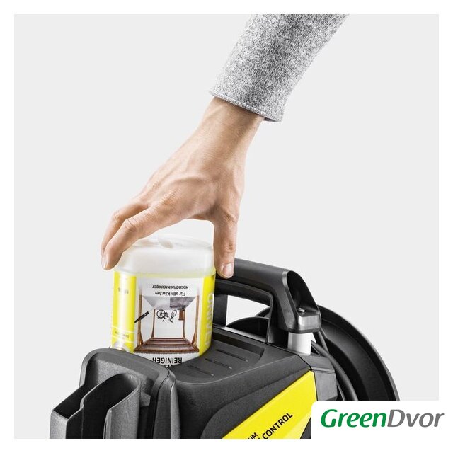 Комплектация | - Приспособление для очистки поверхностей T 7;- Чистящее средство 1 л средство для чистки камней 3-в-1;- Мультиструйный аппарат 3-в-1;- Катушка для шланга высокого давления;- Шланг высокого давления, 10 м;- Адаптер для подключения садового шланга A3/4";- Пистолет G 180 Q Smart Control |