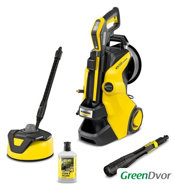 Комплектация | - Домашний комплект: очиститель поверхности T 5, очиститель камня и фасада, 3 в 1, 1 л;- Пистолет высокого давления: G 180 Q Smart Control;- 3-в-1 Multi Jet;- Шланг высокого давления: 10 м, PremiumFlex;- Адаптер для соединителя садового шланга A3/4". |