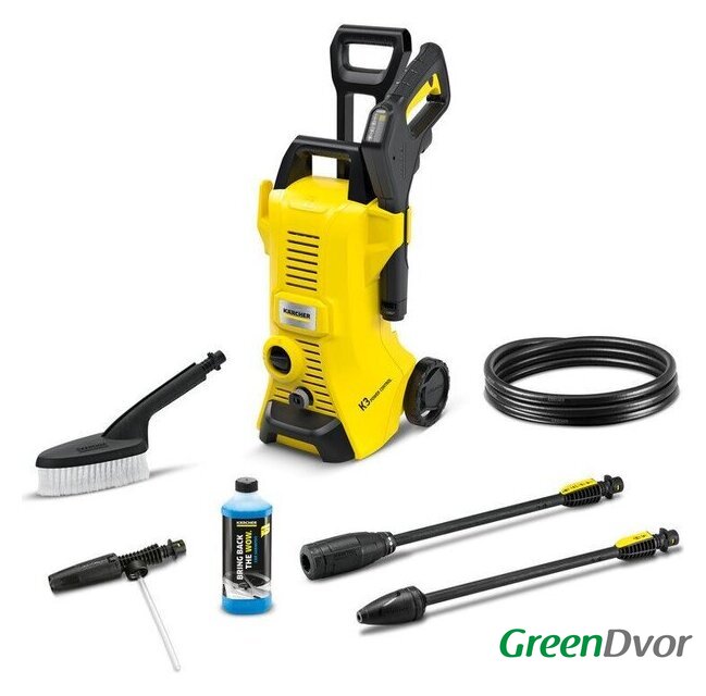 | Комплектация | - Комплект для мойки автомобиля (Car Kit): Щетка, пенное сопло, автомобильный шампунь, 0.5л, - Пистолет: G 120 Q Power Control, - Струйная трубка Vario Power, - Грязевая фреза, - Шланг высокого давления: 7 м, - Адаптер для садового шланга A3/4" |