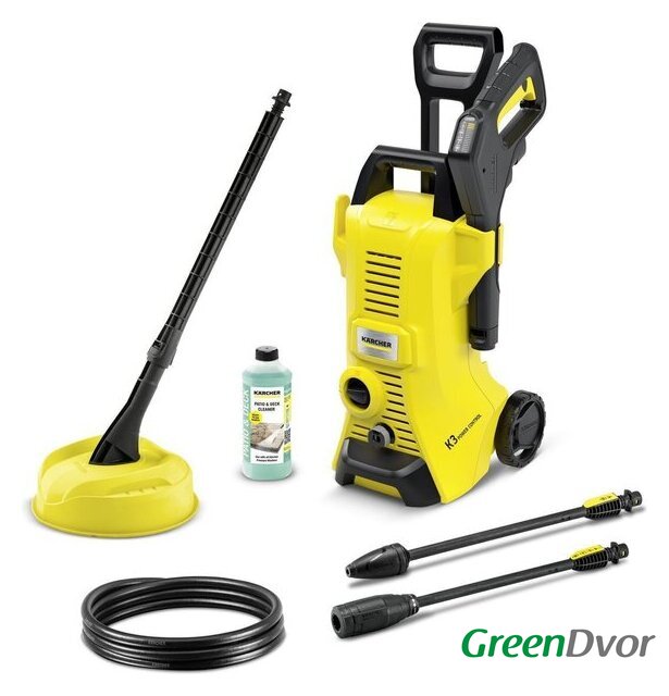 Комплектация | - Очиститель поверхностей T 1 ;- Средство для мытья террас, 0,5 л;- Пистолет высокого давления G 120 Q Power Control;- Струйная трубка Vario Power;- Грязевая фреза;- Шланг высокого давления, 7 м;- Адаптер для подключения садового шланга A3/4". |