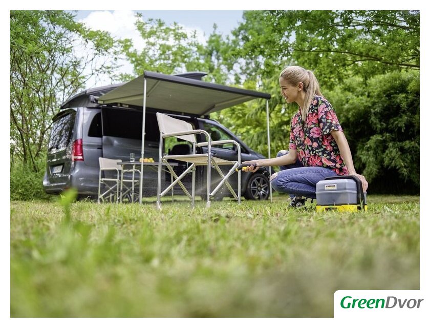 Комплектация | Емкость резервуара для воды: 7 лЛитий-ионный аккумуляторСпиральный шланг: 2,8 мПлоскоструйное соплоФильтр для устройстваКабель для зарядного устройстваВстроенный фильтр тонкой очистки воды |