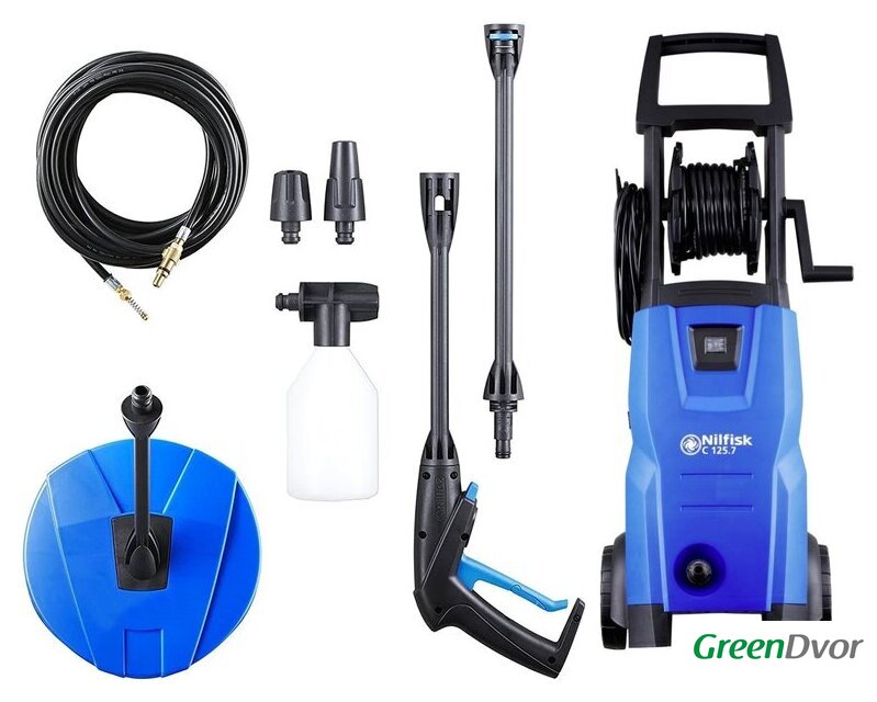 Комплектация | Минимойка - 1 шт.Шланг - 1 шт.Пистолет G1 - 1 шт.Насадка Tornado - 1 шт.Насадка Powerspeed - 1 шт.Копьё - 1 шт.Флакон - 1 шт. |