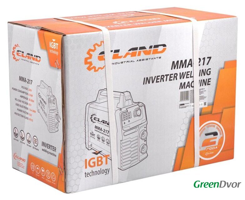 | Комплект поставки | - кабель с держателем электрода 1,8 м; - кабель заземления 1,3 м;- сетевой кабель с вилкой 1,9 м. |