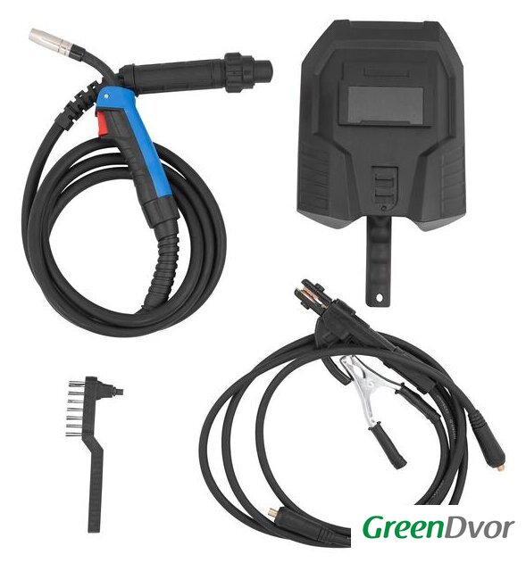 Комплект поставки | - сварочный щиток;- молоток-щетка;- горелка АК15 с евроразъемом 3м;- кабель заземления 1.2м;- кабель с держателем электрода 1.8м;- 2 наконечника для сопла горелки (0.6 и 0.8 мм). |