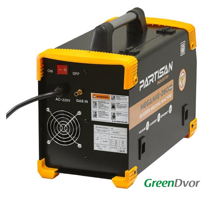Комплект поставки | – сварочный щиток, – молоток-щетка, – горелка с рукавом 2,5 м., – кабель с держателем электрода 2,6 м., – кабель заземления 2,0 м., – сетевой кабель 2,0 м. (без вилки - приобретается отдельно) |