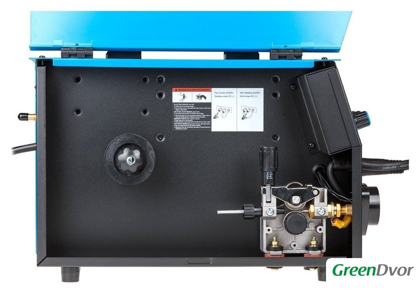 Комплект поставки | - Инверторный полуавтомат;- Горелка сварочная 3 метра;- Электрододержатель с кабелем 2 метра;- Клемма заземления с кабелем 2 метра;- Газовый шланг 2 метра;- Подающий ролик для проволоки 0,6-0,8 мм (установлен в механизм подачи проволоки);Возможна работа с проволокой диаметром 1 мм. Ролик и сопло на 1 мм приобретаются отдельно. |