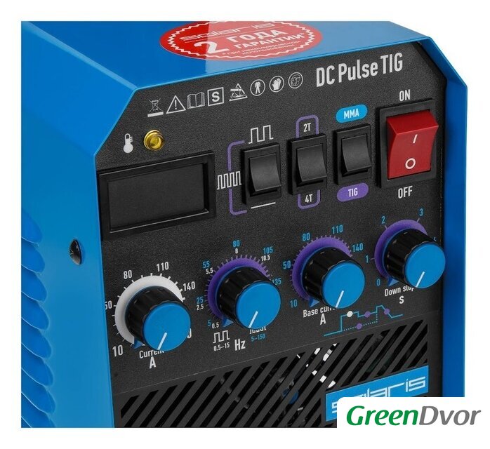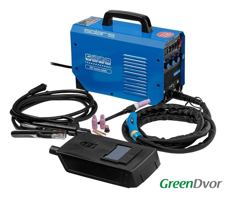 Комплект поставки | Источник сварочного тока;Горелка сварочная TIG 17 серии 3 метра;Электрододержатель с кабелем 2 метра;Клемма заземления с кабелем 2 метра |